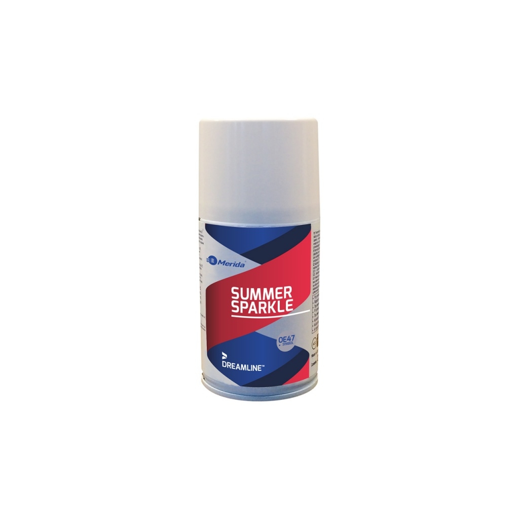 Príjemná vôňa do osviežovača vzduchu SUMMER SPARKLE zaistí dlhotrvajúcu vôňu v hoteloch, penziónoch, kanceláriách či konferenčných sálach. Účinne eliminuje nepríjemný zápach a navonia miestnosť vôňou malín, ružového korenia, jablka, slivky, pivoňky, fialky, pelargónie, jazmínu a púpalky. Zásobník obsahuje 3000 dávok vône a zvládne navoňať vzduch v miestnostiach do 170 m3.