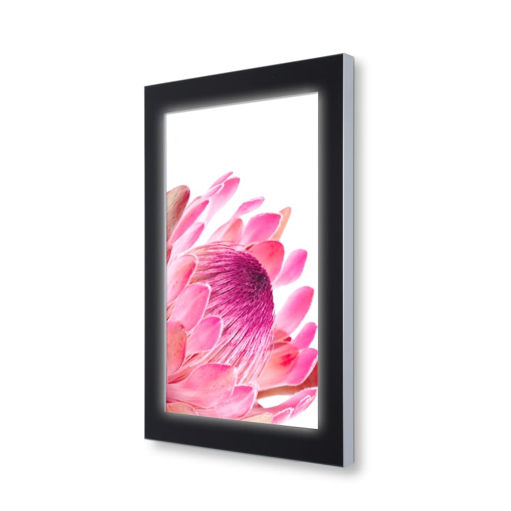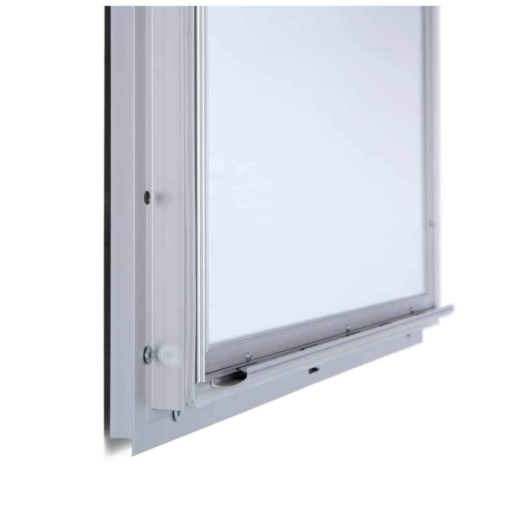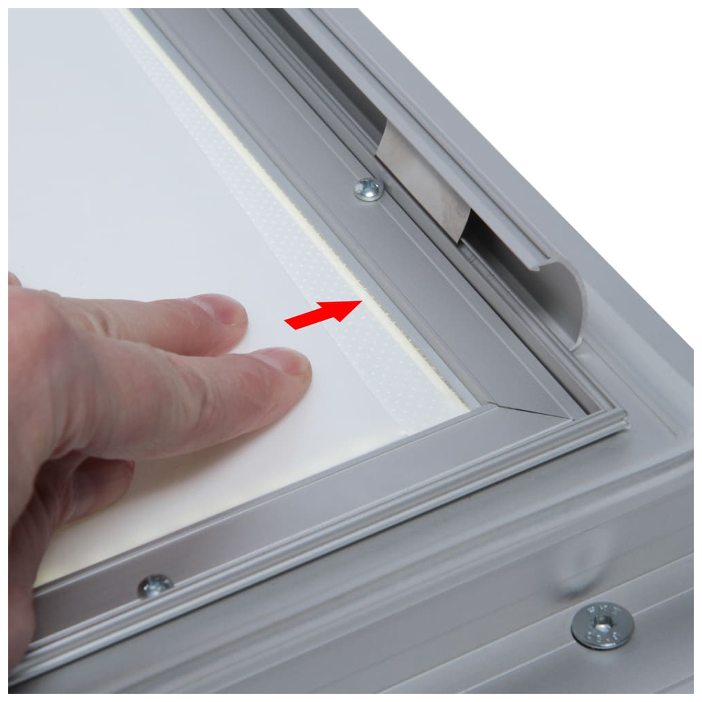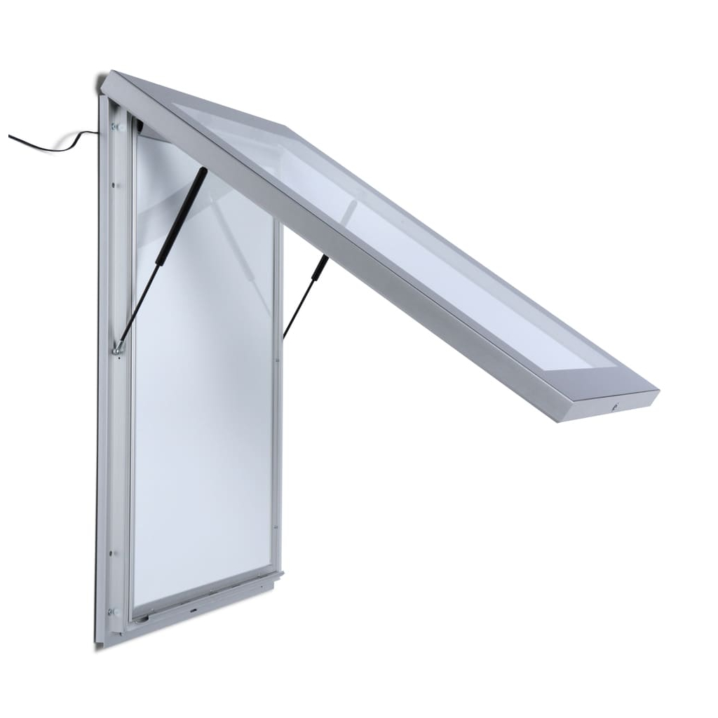 Vitrína vo formáte A0 disponuje lakovaným povrchom, ktorý je nasvietený pomocou technológie LED. Vložený obsah sa tak stane neprehliadnuteľným a okoloidúcich zaujme aj v noci. Vkladanie dokumentov je hračka. Po otvorení dvierok stačí odklopiť jednu alebo viac strán rámu, obsah jednoducho vložiť a zaklapnúť späť.