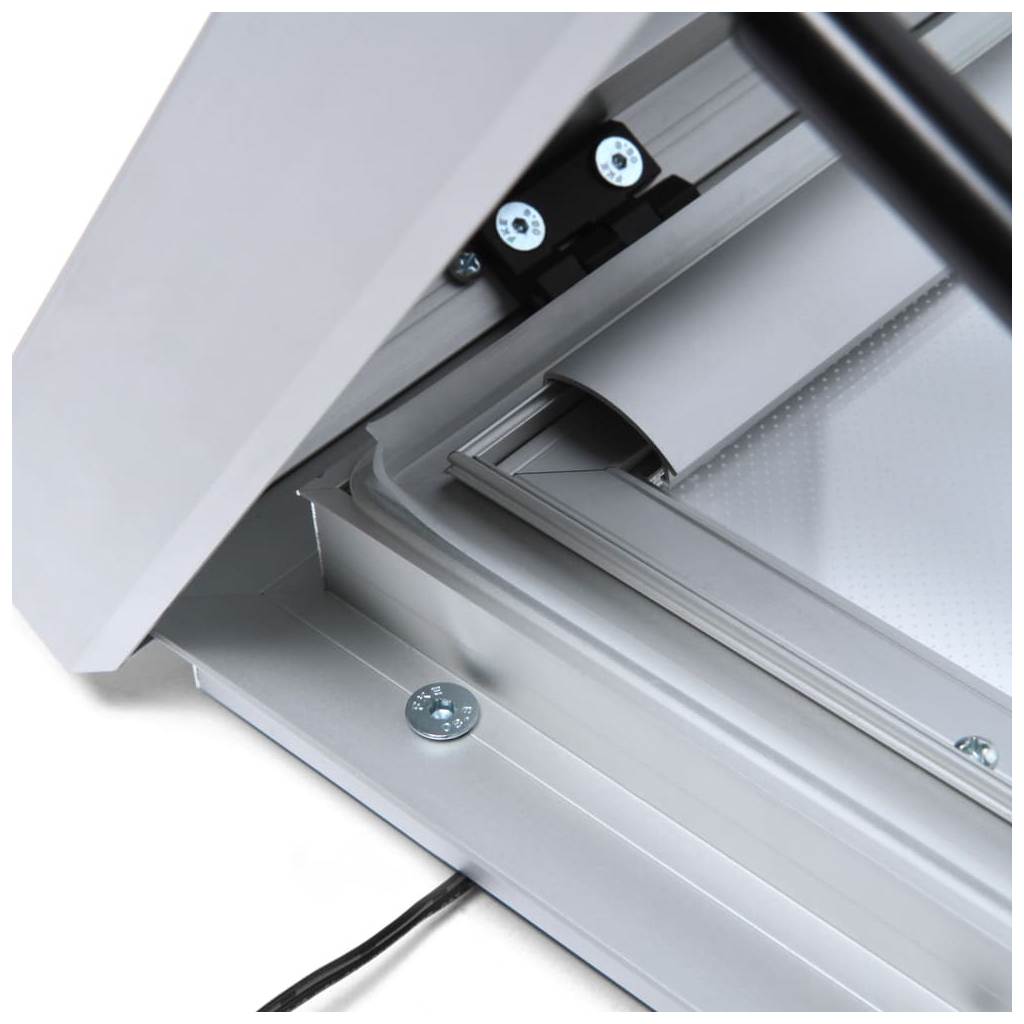Elegantný rám je vyrobený z pevného hliníka, ktorý je veľmi odolný a okrem toho, že dobre vyzerá, spoľahlivo ochráni prezentovaný obsah.