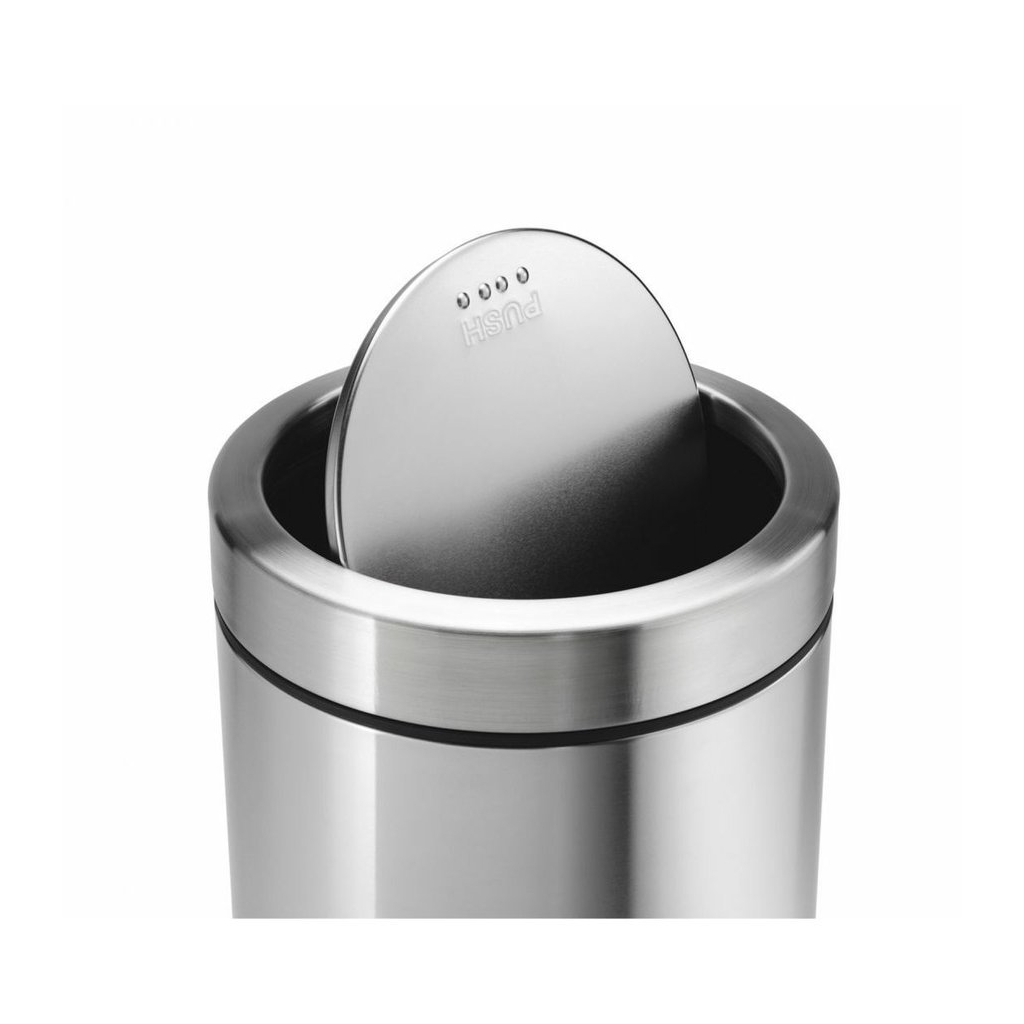 Odpadkový kôš s výklopným vekom a objemom 55 l využijete najčastejšie v komerčných priestoroch. Jeho konštrukcia valcového tvaru je vyrobená z kartáčovanej ocele. Disponuje vnútornou nádobou na odpad, ktorú môžete kedykoľvek jednoducho vybrať a umyť.