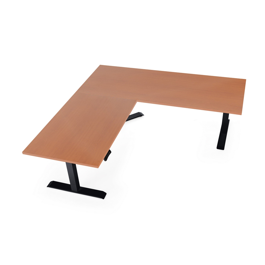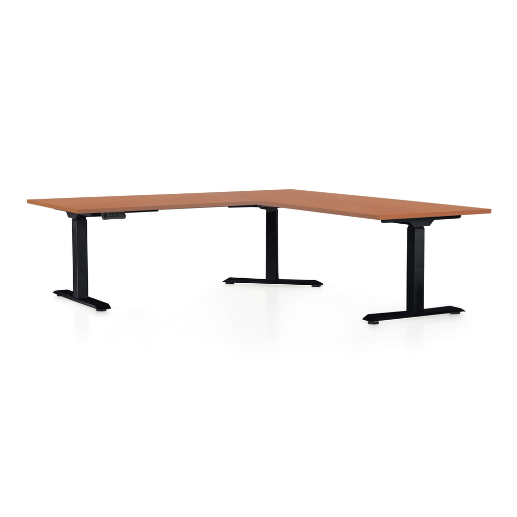 Výškovo nastaviteľný stôl OfficeTech Angle, 180 x 200 cm, čierna podnož, čerešňa