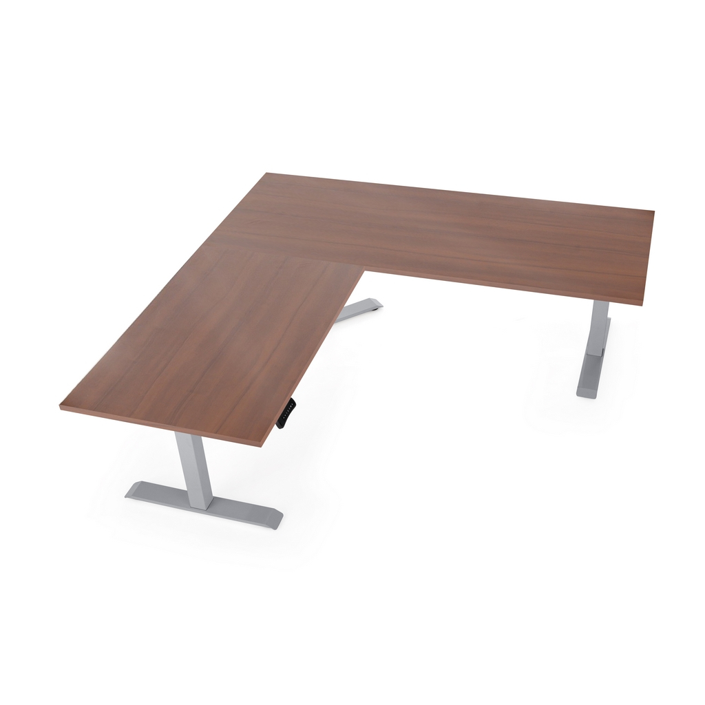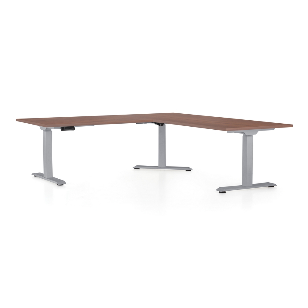 Výškovo nastaviteľný stôl OfficeTech Angle, 180 x 200 cm, sivá podnož, orech