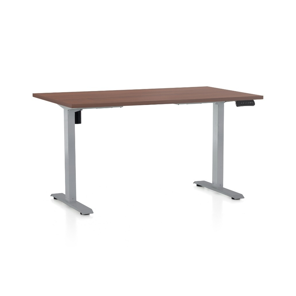 Výškovo nastaviteľný stôl OfficeTech B, 120 x 80 cm, sivá podnož, orech