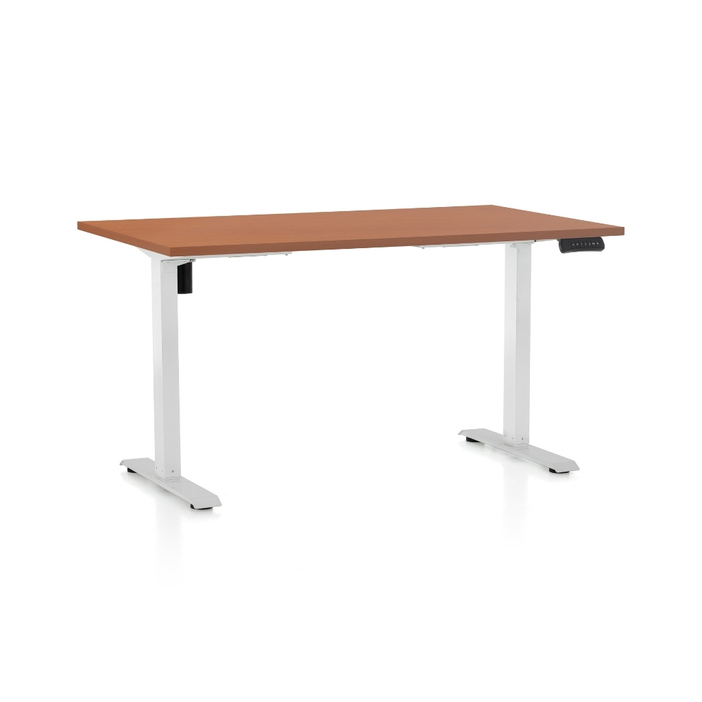 Výškovo nastaviteľný stôl OfficeTech B, 140 x 80 cm, biela podnož, čerešňa