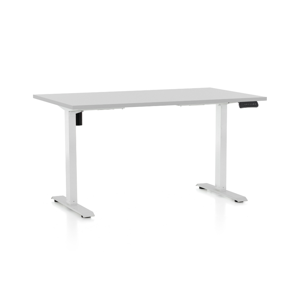 Výškovo nastaviteľný stôl OfficeTech B, 140 x 80 cm, biela podnož, svetlo sivá