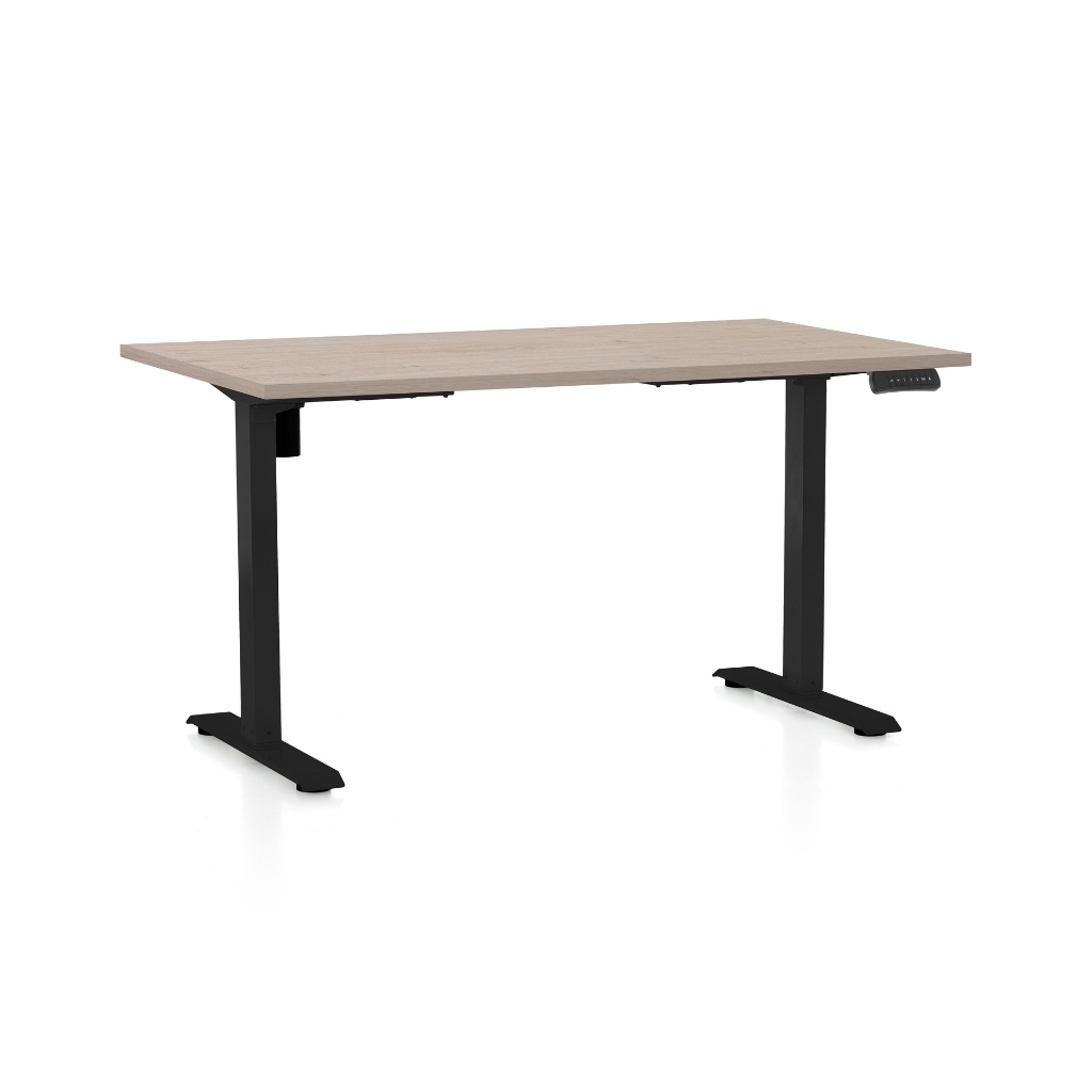Výškovo nastaviteľný stôl OfficeTech B, 140 x 80 cm, čierna podnož, dub