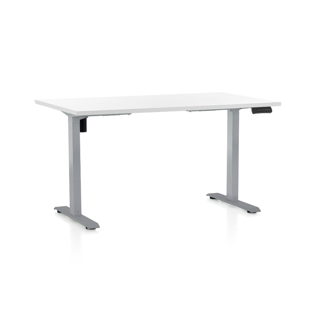 Výškovo nastaviteľný stôl OfficeTech B, 140 x 80 cm, sivá podnož, biela