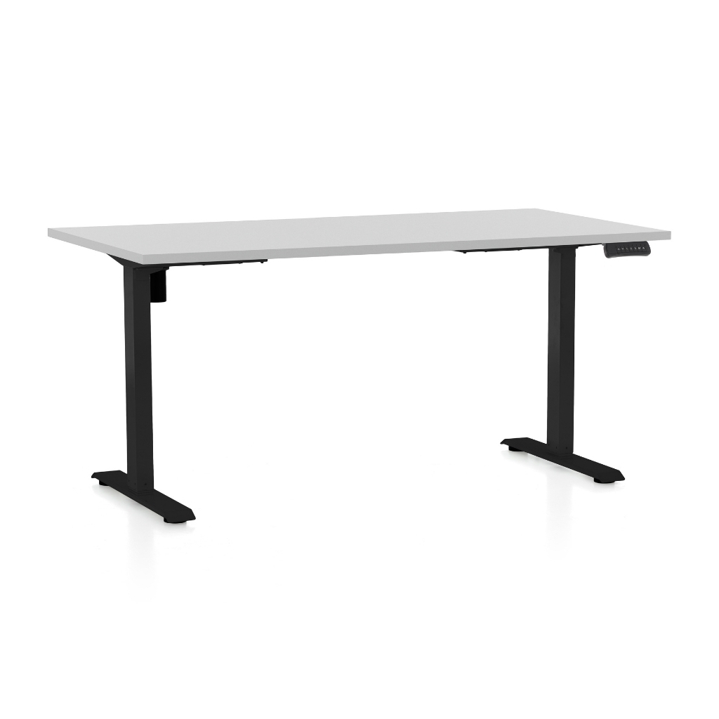 Výškovo nastaviteľný stôl OfficeTech B, 160 x 80 cm, čierna podnož, svetlo sivá