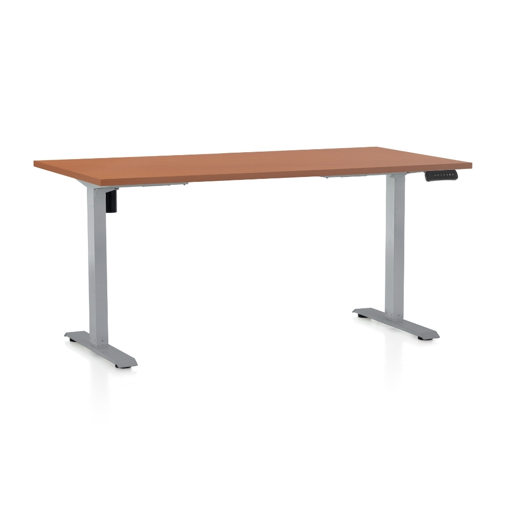 Výškovo nastaviteľný stôl OfficeTech B, 160 x 80 cm, sivá podnož, čerešňa