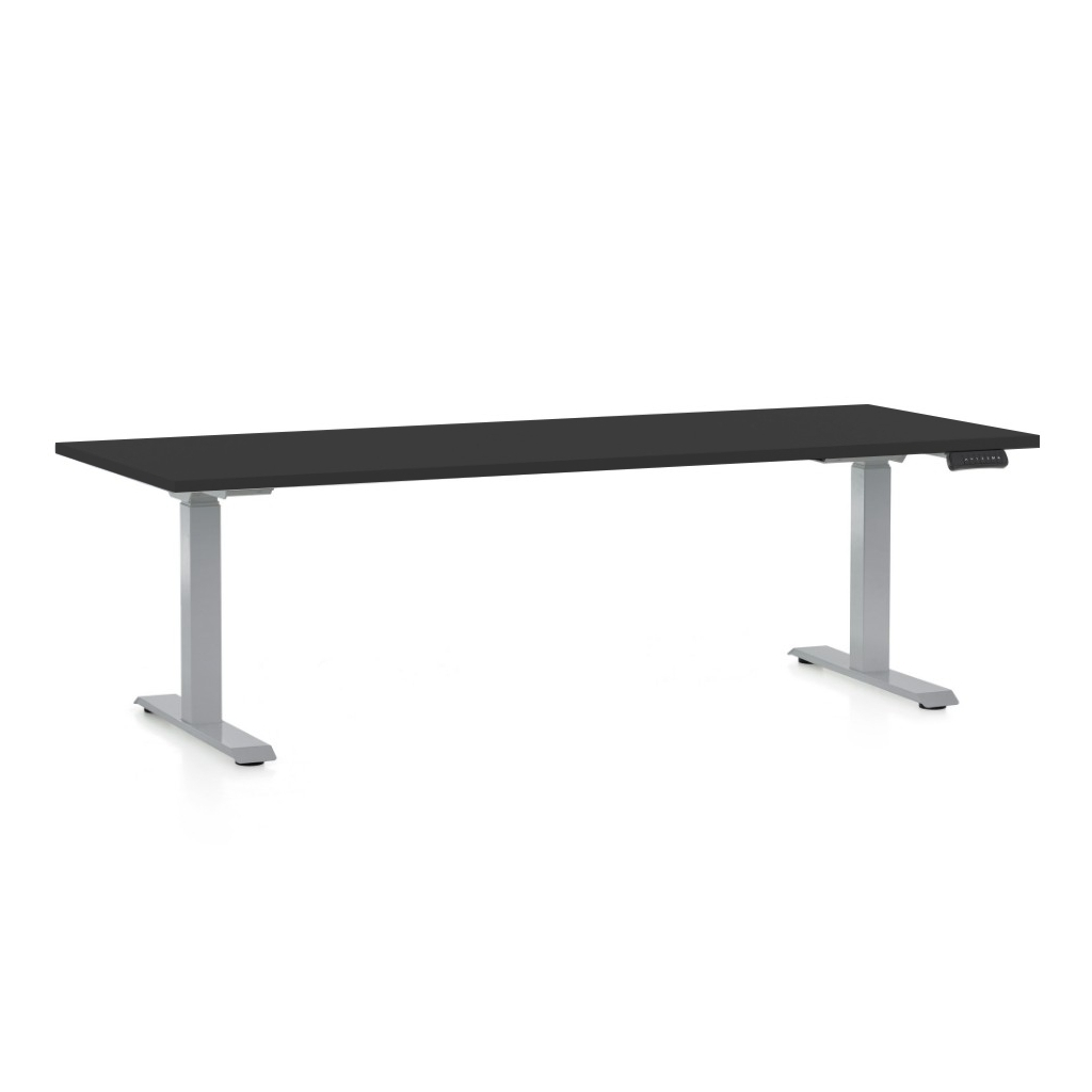Výškovo nastaviteľný stôl OfficeTech D, 200 x 80 cm, sivá podnož, čierna
