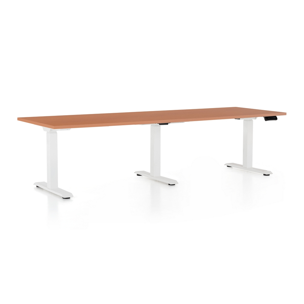 Výškovo nastaviteľný stôl OfficeTech Long, 240 x 80 cm, biela podnož, čerešňa