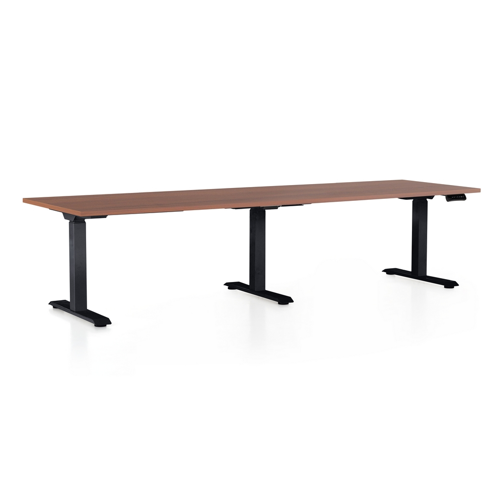 Výškovo nastaviteľný stôl OfficeTech Long, 260 x 80 cm, čierna podnož, orech