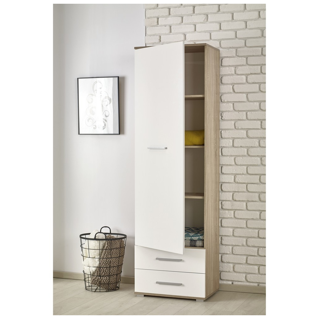 Vysoká policová skriňa Lima II, biela / dub sonoma
