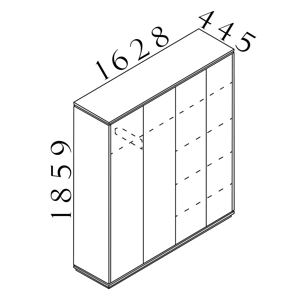 Vysoká šatníková skriňa Creator obsahuje v ľavej časti výsuvnú tyč na vešiaky a 1 policu, v druhej polovici potom 4 police, ktoré pri rovnomernom zaťážení disponujú nosnosťou až 30 kg. Korpus, dosky aj police skríň sú hrubé 18 mm.