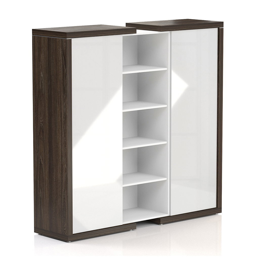 Dvere na oboch stranách sa otvárajú systémom Push-To-Open, teda otváranie pomocou ľahkého zatlačenia. Stredná časť skrine so 4 policami je otvorená, takže do nej môžete umiestniť veci, ku ktorým chcete mať rýchly prístup.