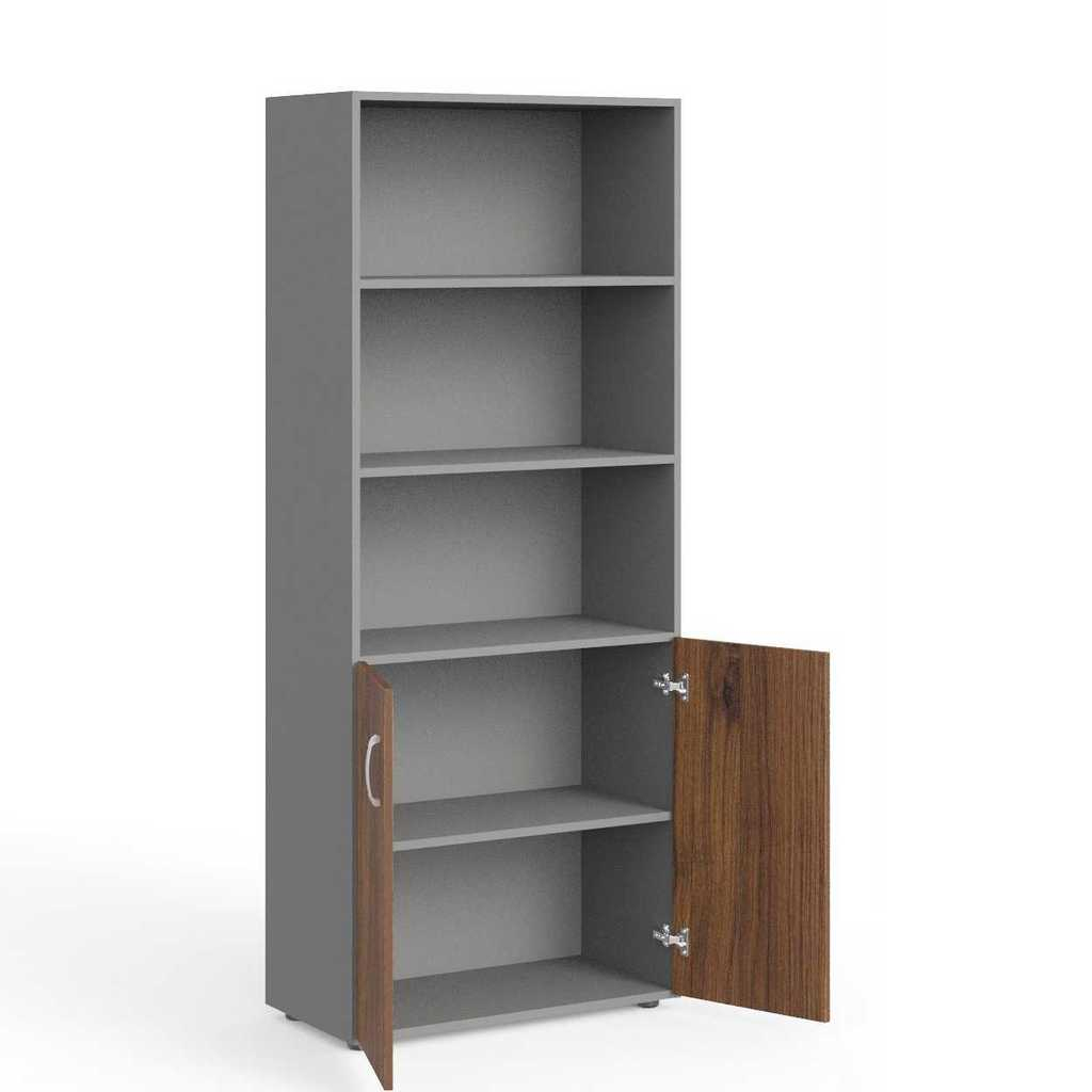 Vysoká skriňa Manager predstavuje ideálne riešenie pre usporiadanie a ukladanie vašich dokumentov, kníh alebo pracovných pomôcok. Vďaka svojmu praktickému dizajnu so štyrmi policami a krídlovými dverami poskytuje dostatok priestoru na efektívne využitie úložného priestoru v kancelárii alebo domácnosti.