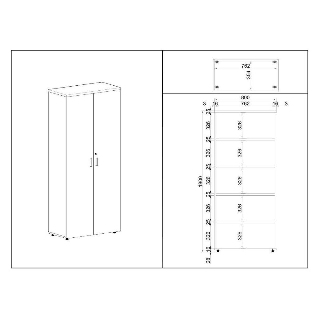 Celkové rozmery skrine sú 80 × 40 × 180 cm (šírka × hĺbka × výška). Prvé dva z nich sú jednotné pre všetky skrine SimpleOffice.