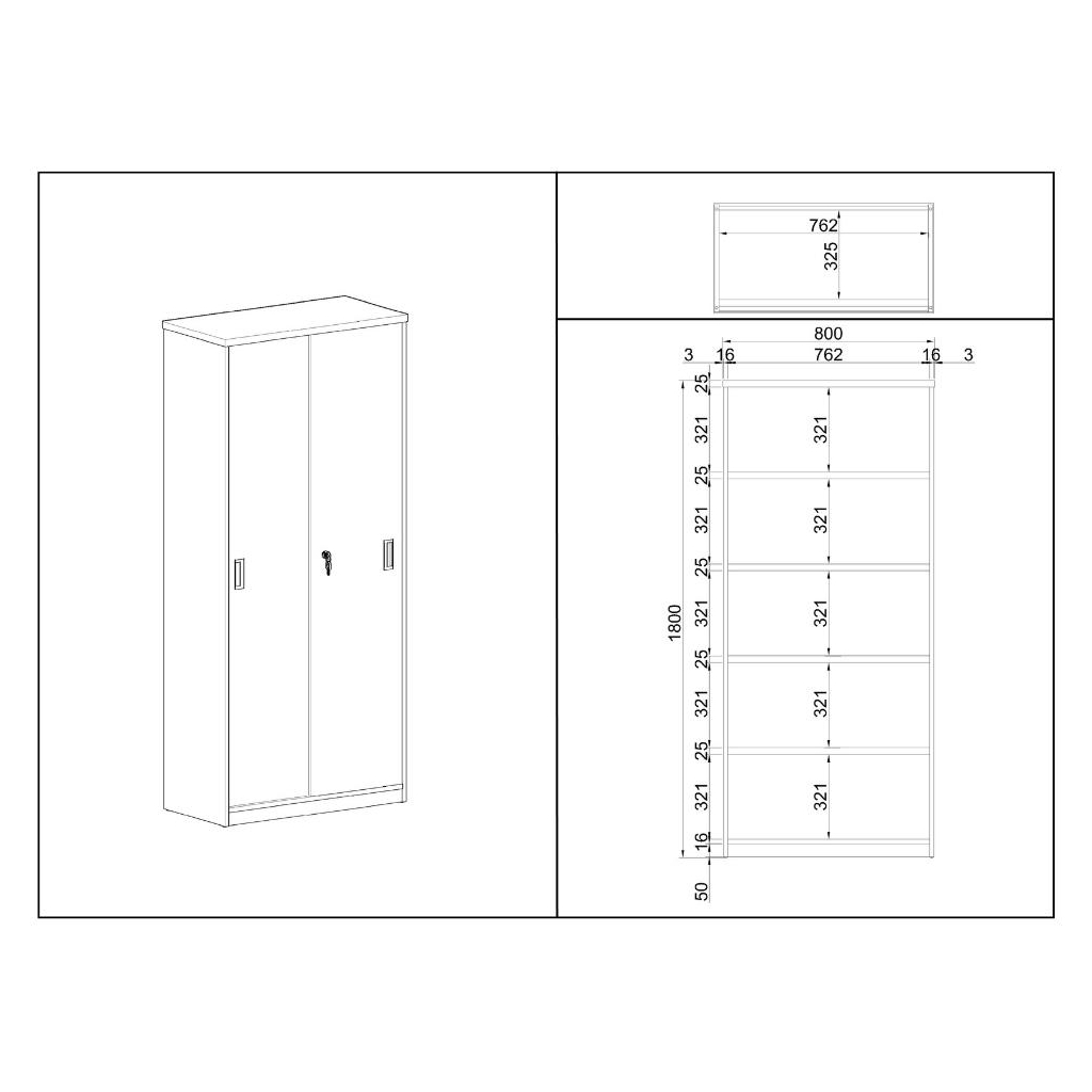 Celkové rozmery skrine sú 80 × 40 × 180 cm (šírka × hĺbka × výška). Prvé dva z nich sú jednotné pre všetky skrine SimpleOffice.