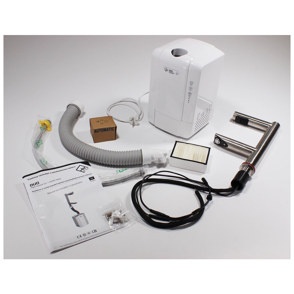 Jet Dryer Duo je unikátny predovšetkým vďaka kombinácií vysúšača rúk a automatickej vodovej batérie. Ruky si tak pohodlne umyjete aj vysušíte v rýchlosti na jednom mieste.