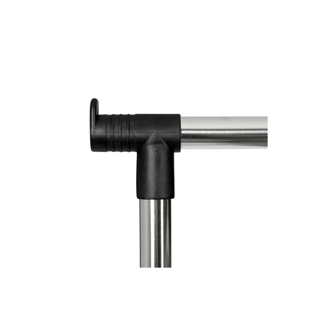 Stojan je vyrobený v kombinácii kovu s plastovými časťami. Disponuje tyčou pre zavesenie odevov a jeho veľkou výhodou je možnosť výškového nastavenia závesnej tyče od 85 do 165 cm. Na jednoduchú manipuláciu po priestore iste oceníte tiež kolieska.