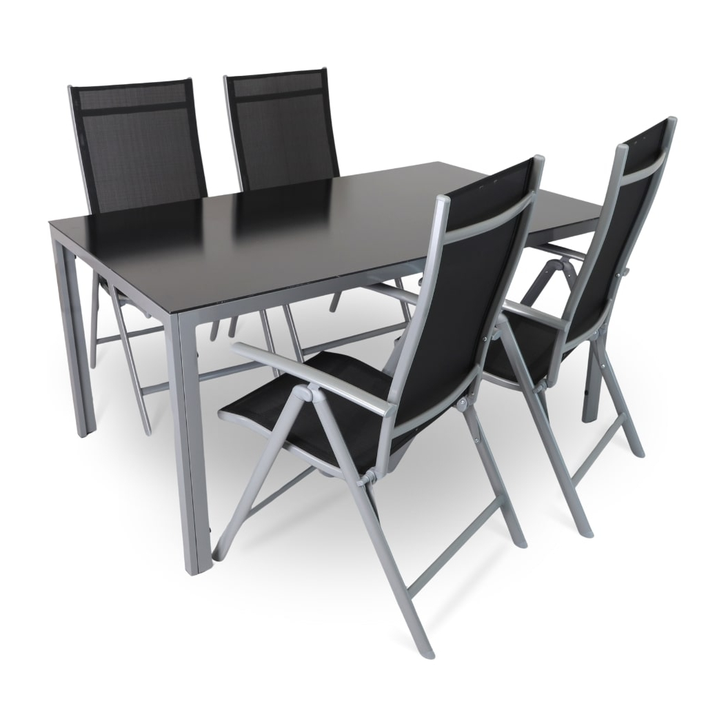 Záhradná zostava Alvero 2, obdĺžnik - 4 miesta, čierna / sivá