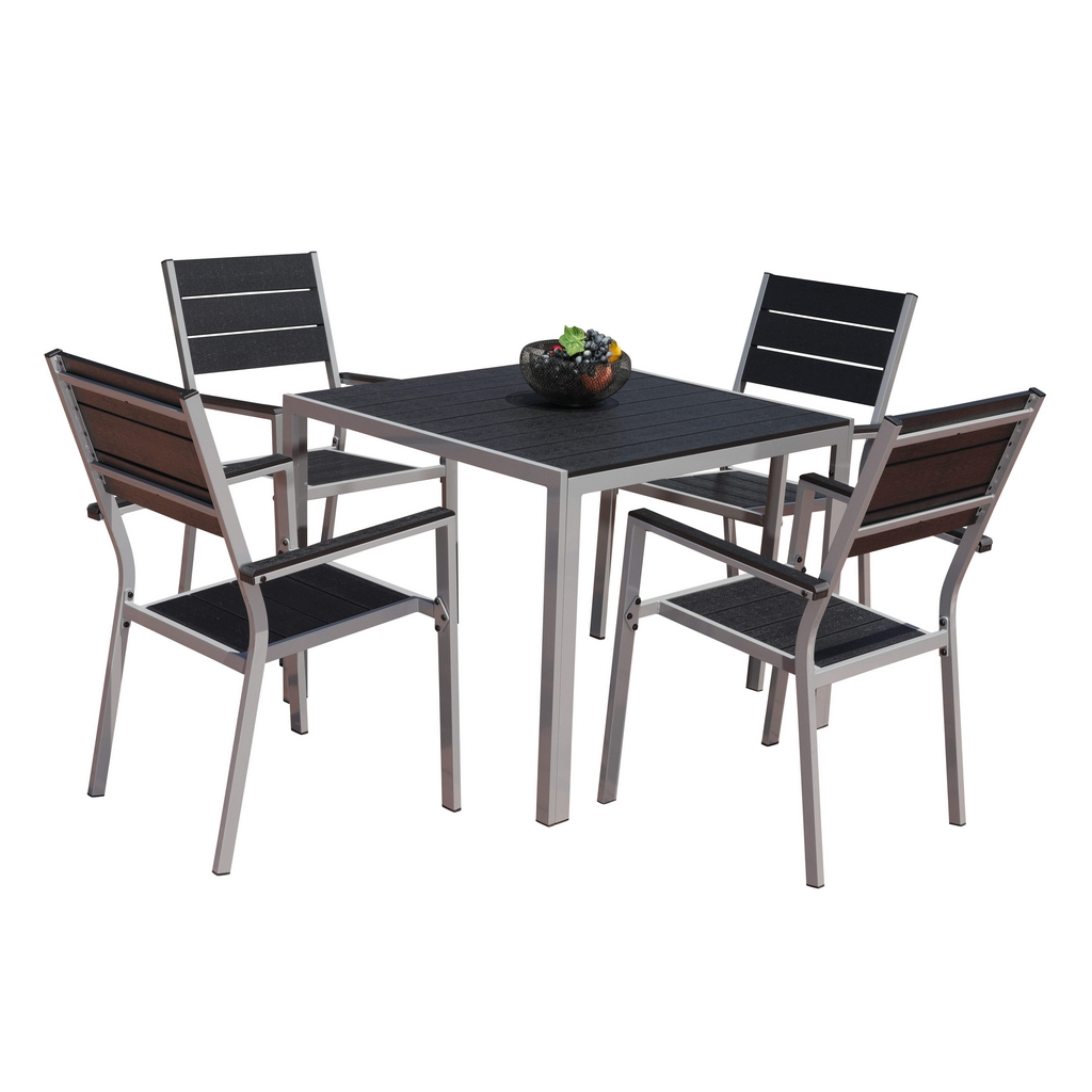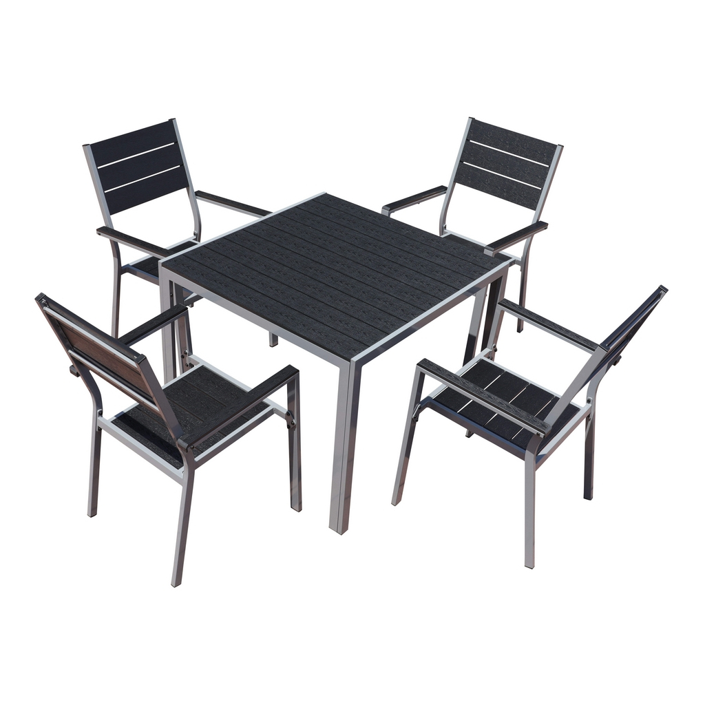 Súprava sa skladá zo štvorcového stola Fargo (90 × 90 cm) a 4 stoličiek Fargo.