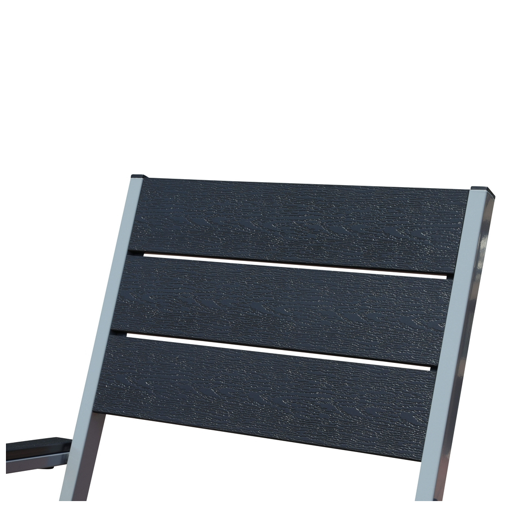 Nohy a konštrukciu tvoria hliníkové rúrky s rozmermi 40 × 20 a 30 × 20 mm s práškovo lakovanými profilmi. Doska stola, sedadlá a operadlá sú vyrobené z odolného plastu, ktorý imituje drevené dosky. Táto kombinácia materiálov si nevyžaduje žiadnu špeciálnu údržbu.