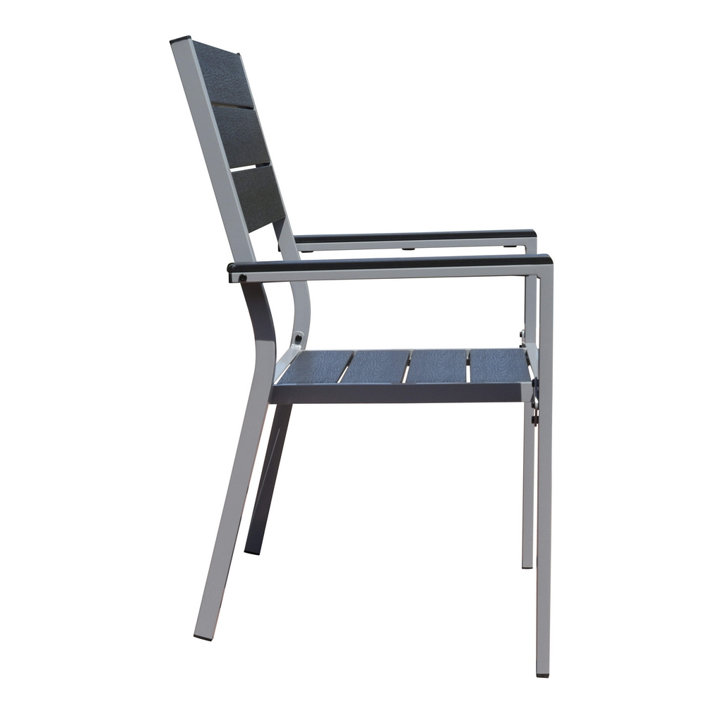 Nohy a konštrukciu tvoria hliníkové rúrky s rozmermi 40 × 20 a 30 × 20 mm s práškovo lakovanými profilmi. Doska stola je vyrobená z tvrdeného skla, sedadlá a operadlá z odolného plastu v imitácii dreva. Táto kombinácia materiálov si nevyžaduje žiadnu špeciálnu údržbu.