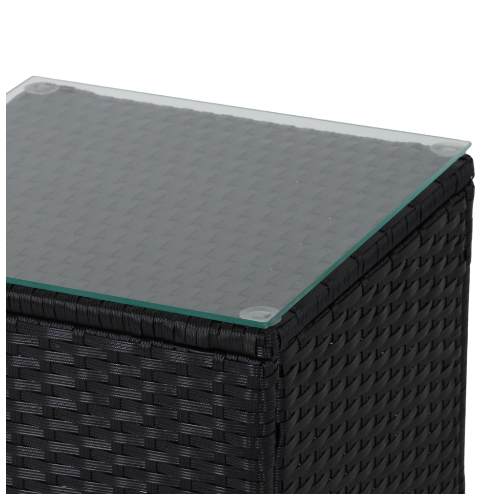 Konštrukcia stola je vyrobená z čiernych kovových rúrok a umelého ratanu. Odolá dažďu aj letnému slnku a navyše je príjemne vetraný. Vrchnú dosku tvorí štvorec z tvrdeného skla, ktorý možno vyčistiť niekoľkými ťahmi handričkou.
