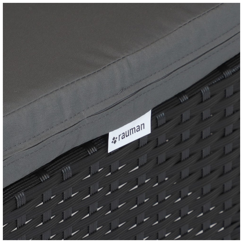 Konštrukcia stola aj kresiel je z čiernych kovových trubiek a umelého ratanu. Ten zvládne dážď aj letné slnko, a navyše príjemne vetrá.