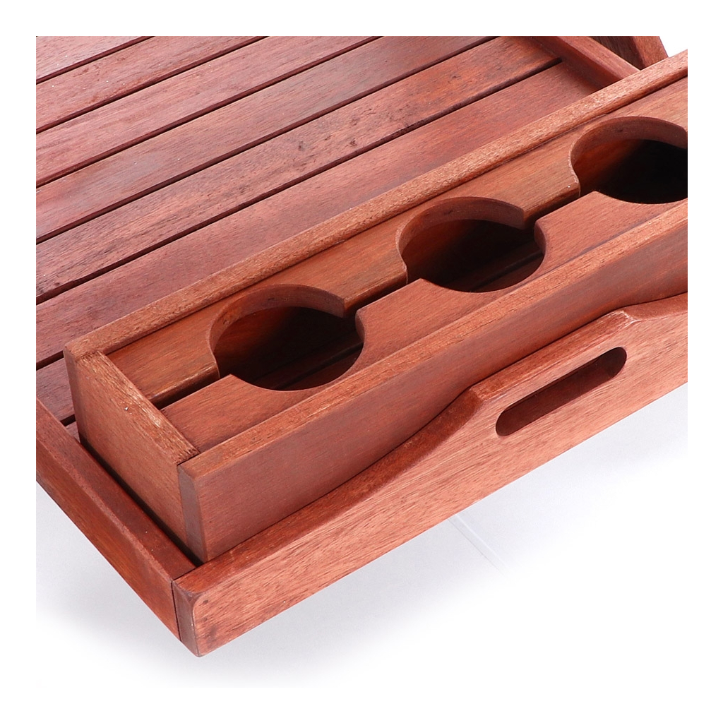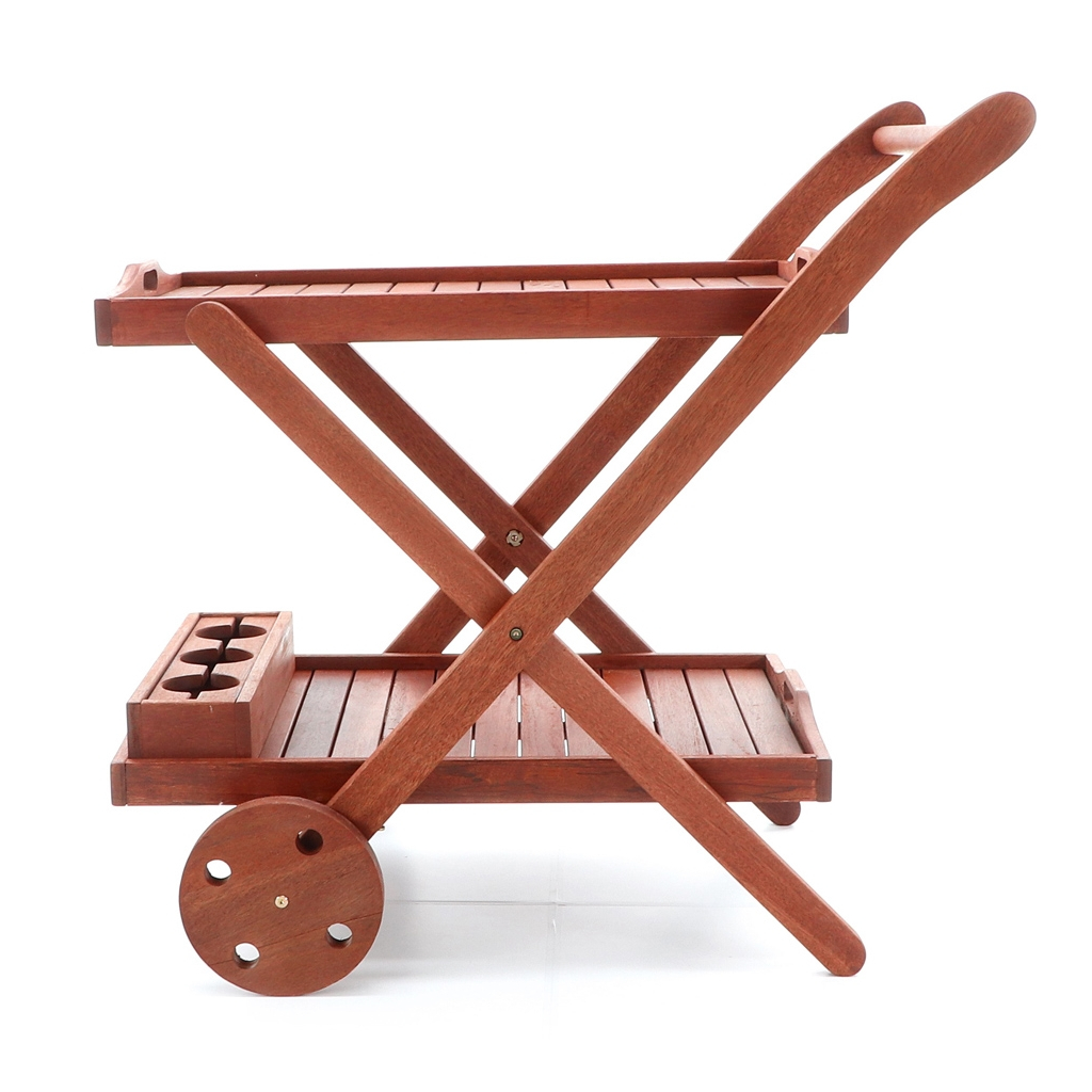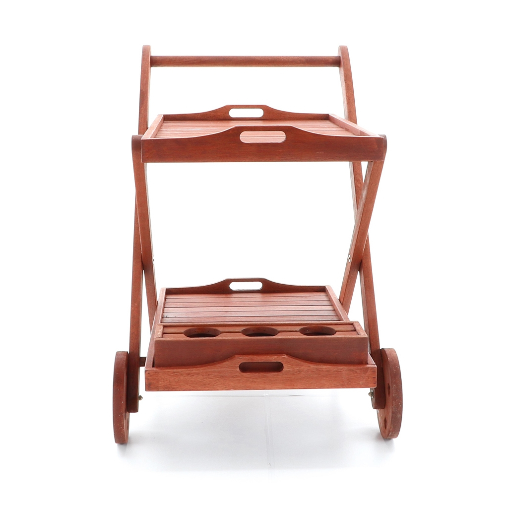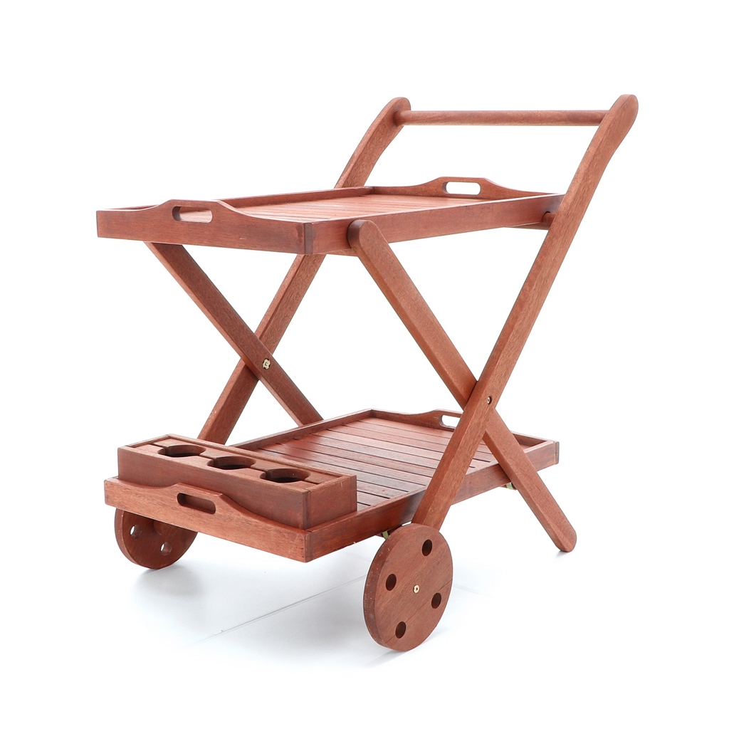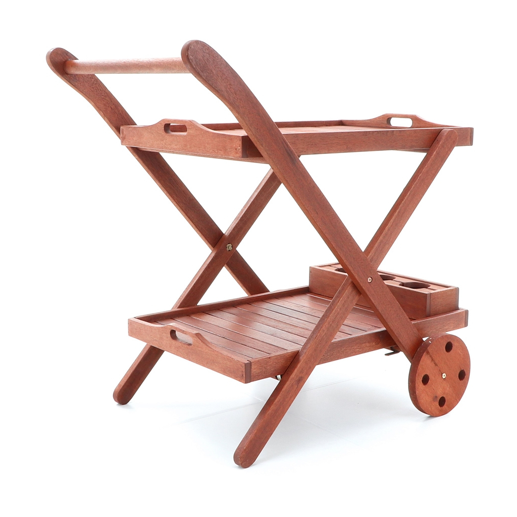 Záhradný servírovací stolík Yorick nájde svoje uplatnenie predovšetkým ako doplnok k záhradným stolovým zostavám. Ponúka dodatočný odkladací priestor napríklad pre občerstvenie. Skladá sa z 2 políc, pričom spodná obsahuje držiaky na fľaše. Jeho konštrukcia je vyrobená z pevného exotického dreva meranti. Pre zjednodušenie manipulácie disponuje stolík Yorick praktickými pojazdnými kolieskami.