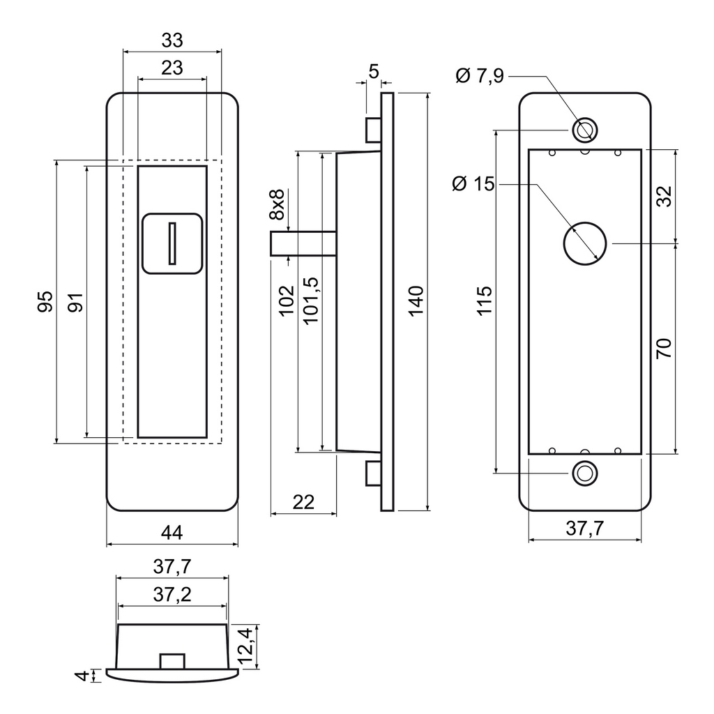 Tento variant je vybavený WC zámkom – z vnútornej strany obsluha páčkou, zvonku je možné núdzovo otvoriť skrutkovačom. Oba prvky sú zapustené, takže neprečnievajú do priestoru.