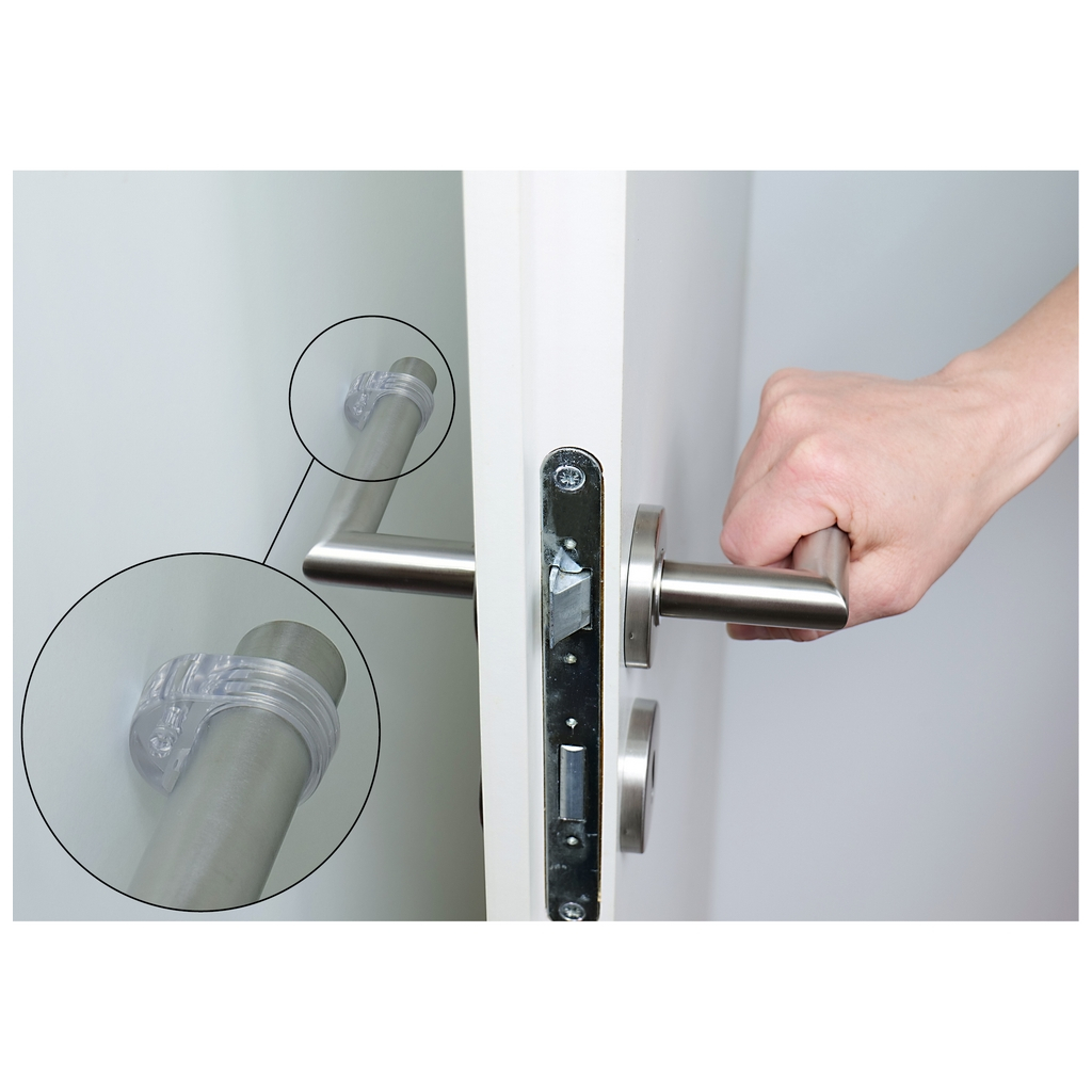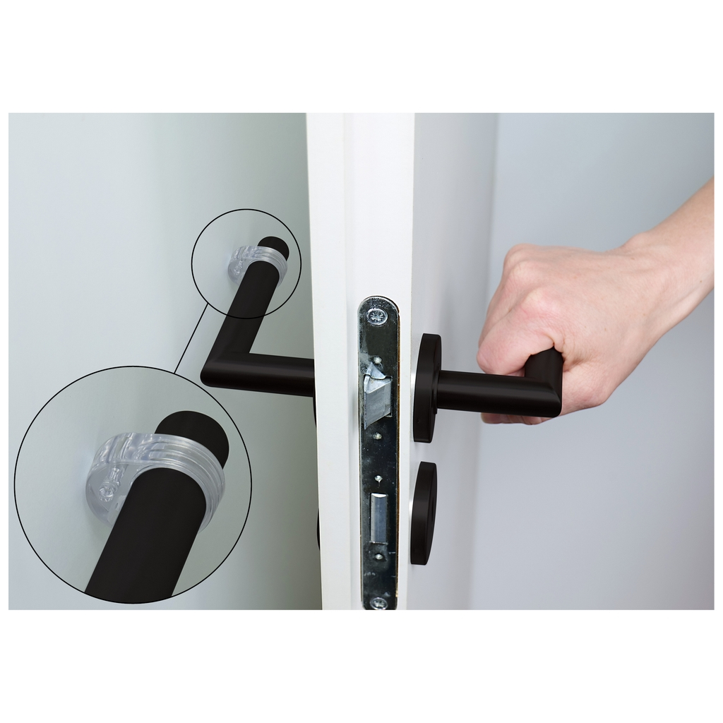 Tieto jednoduché zarážky ochránia vaše kľučky a zvyšok interiéru pred vzájomnými nárazmi. Vyrobené sú z pružného PVC a ich použitie je jednoduché - stačí krúžok navliecť na kľučku a presahujúcu časť otočiť smerom od dverí.