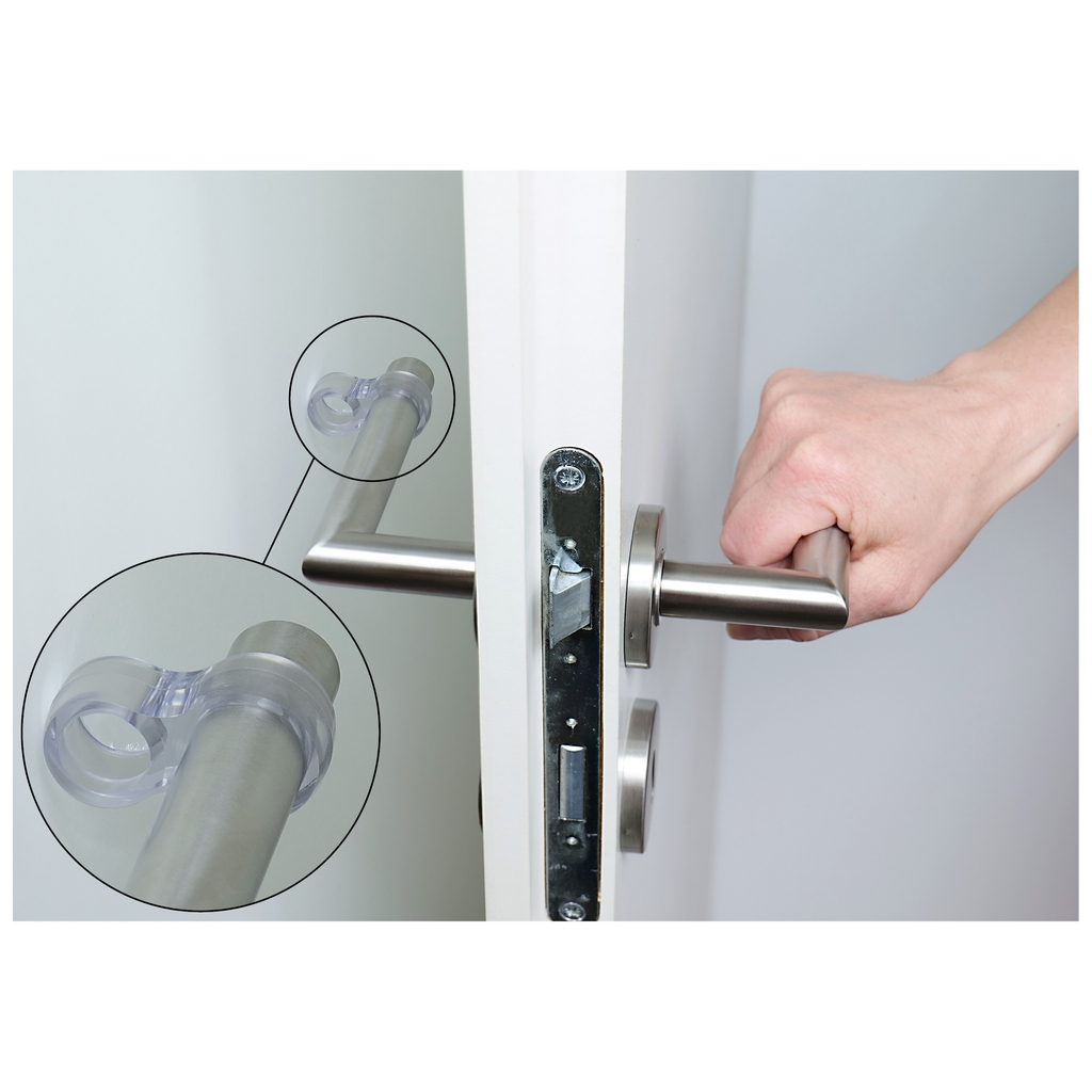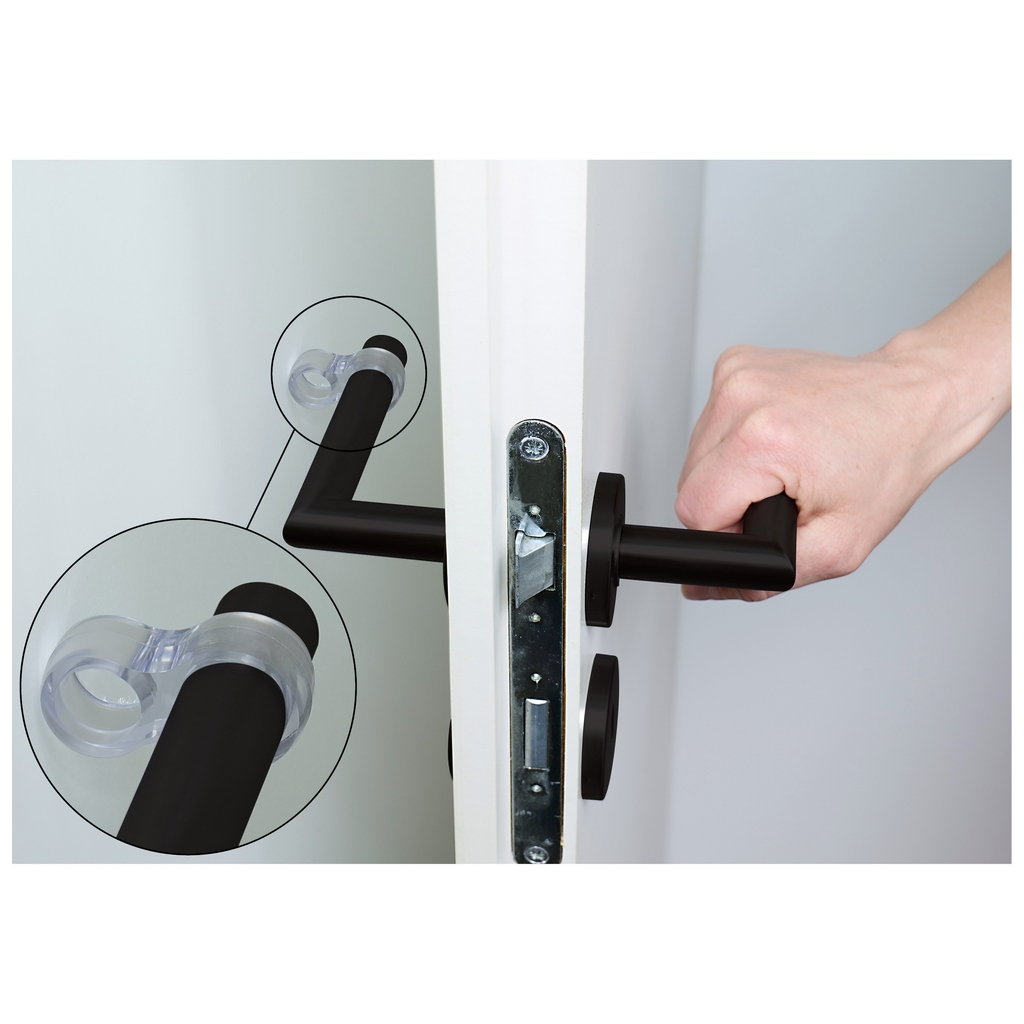 Tieto jednoduché zarážky ochránia vaše kľučky a zvyšok interiéru pred vzájomnými nárazmi. Vyrobené sú z pružného PVC a ich použitie je jednoduché - stačí jeden krúžok navliecť na kľučku a druhý otočiť smerom od dverí.