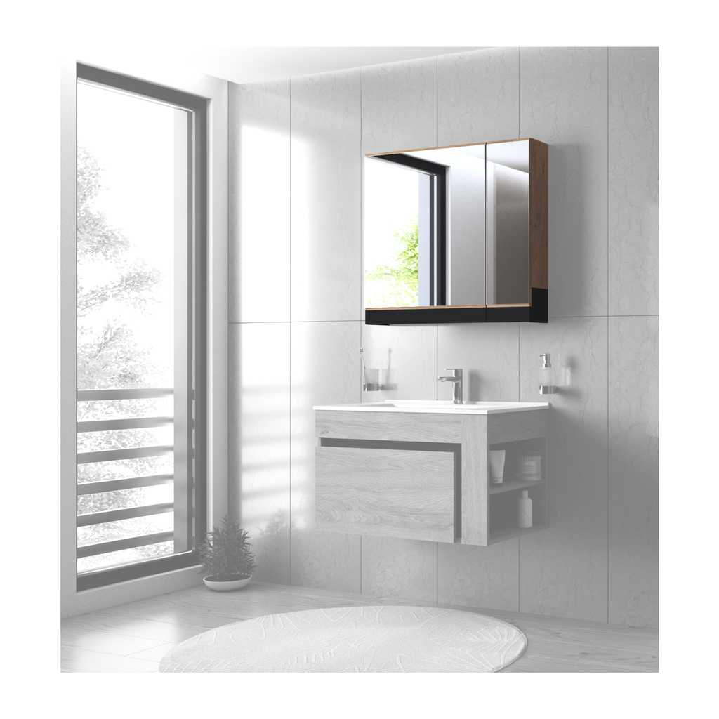 Závesná zrkadlová skrinka Stokes 80 cm, strieborná / dub zlatý