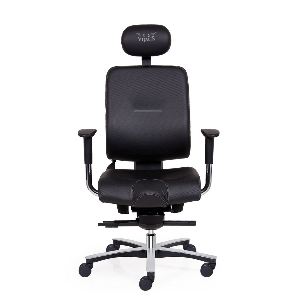 Stolička je vybavená zosilneným sedadlom a operadlom z perforovanej kože s logom VITALIS. Sedadlo je veľmi pohodlné vďaka penovej výplni. Navyše disponuje systémom odpruženia pomocou taštičkových pružín a pamäťovej peny s reguláciou tuhosti mechanizmu.