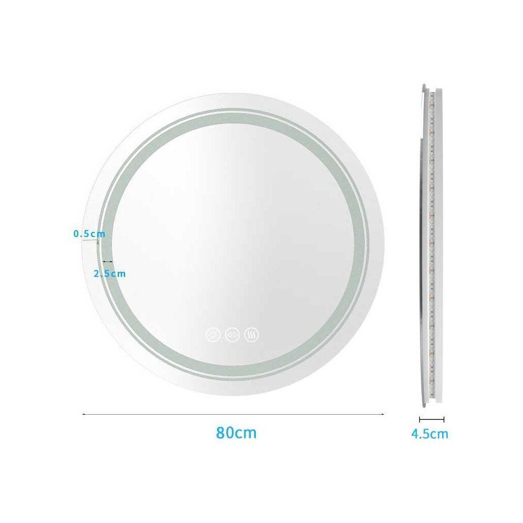 Zrkadlo Amyra s LED osvetlením je praktickým a štýlovým doplnkom do každej miestnosti. S priemerom 80 cm ponúka dostatočný priestor na pohodlné sledovanie vlastného obrazu, zatiaľ čo zabudované LED osvetlenie zabezpečuje jasné a rovnomerné svetlo. Vďaka kovovej konštrukcii je zrkadlo stabilné a odolné, čím si udržuje svoju kvalitu a vzhľad dlhé roky. Hĺbka zrkadla je iba 4,5 cm, čo umožňuje jednoduchú inštaláciu aj na menšie plochy.